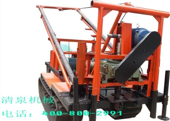 履帶式鉆機(jī)包括主機(jī)、泵站、操縱臺(tái)、行走履帶四大部分。該鉆機(jī)是一種分體式的履帶鉆機(jī),由泵車(chē)和鉆機(jī)組成,每一節(jié)由一根高壓軟管相連,結(jié)構(gòu)緊湊,油路系統(tǒng)高度一體化,方便了日常的維修保養(yǎng)。該系統(tǒng)操作簡(jiǎn)單,全液控操作,具有工作效率高、勞動(dòng)強(qiáng)度低、操作簡(jiǎn)單、能滿(mǎn)足各種工作條件下的角度要求。